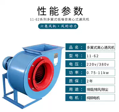 11-62 hotel household special oil fume exhaust centrifugal fan 380V dust removal industrial exhaust fan pipe exhaust fan