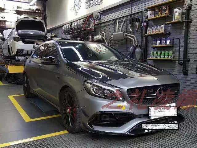 Car retrofit for the Benz CLA45 with carbon fiber 507 style bore hole retrofit machine lid