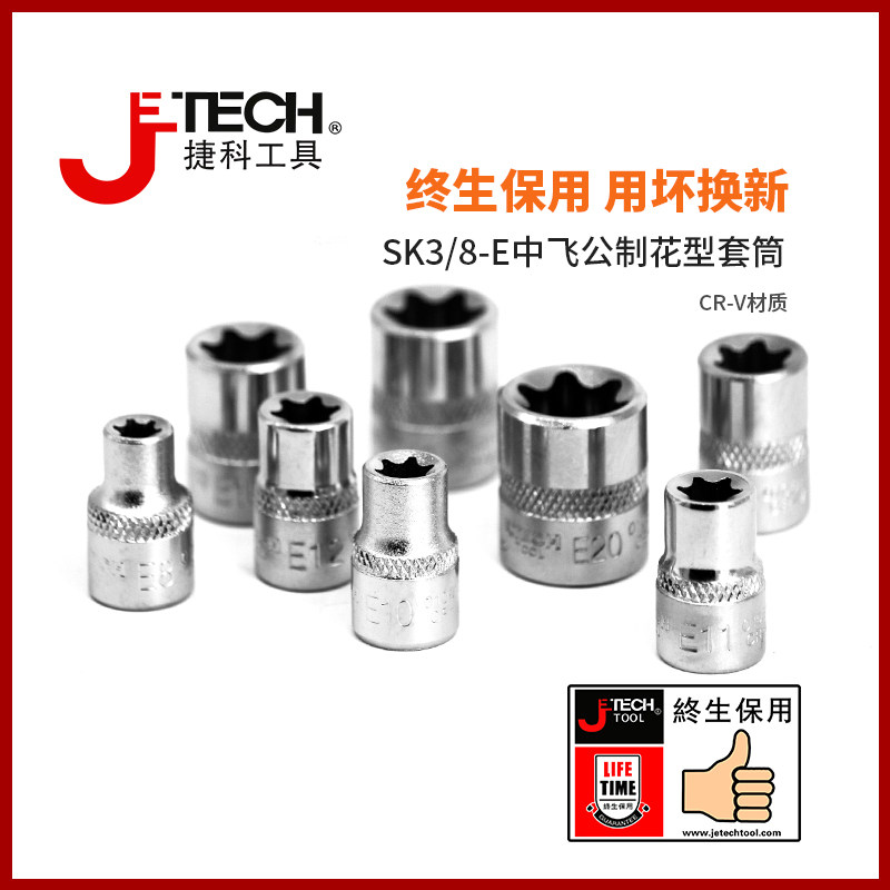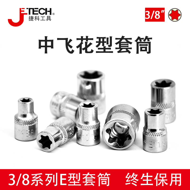 Jieke flower socket E-type star metric six-flower puller plum 1 2 big fly 3 8 fly in 1 41 4-inch socket wrench star