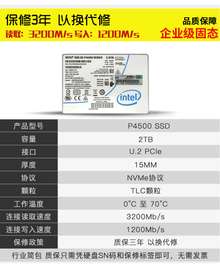 Intel Intel P4500 2T Solid Hard P4510 P4510 2T 4T U 2 Enterprise Class Solid State Dish