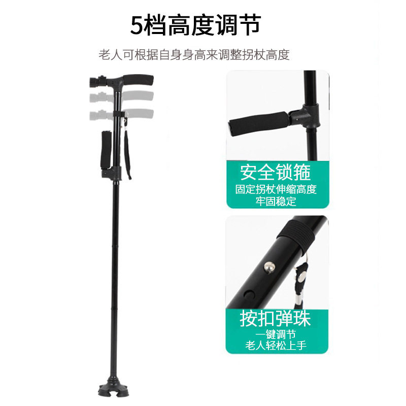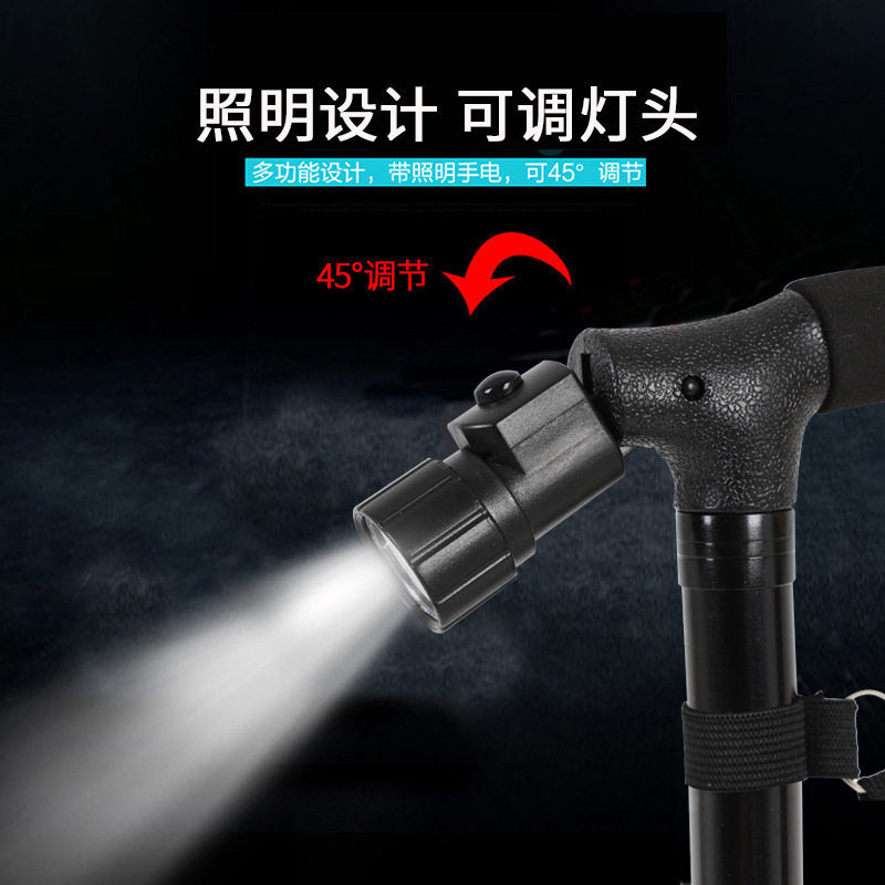 Folding Four Feet of Walking Stick With Light Crutches With Lamp Crummy Old Man Versatile Telescopic Anti-Slip Light Aluminum Alloy Cane Mountaineering
