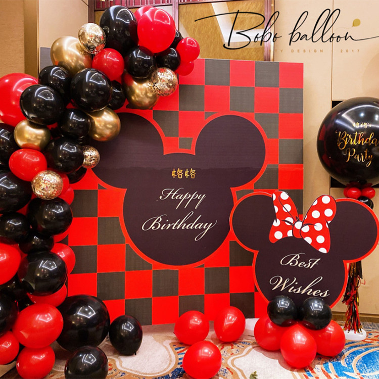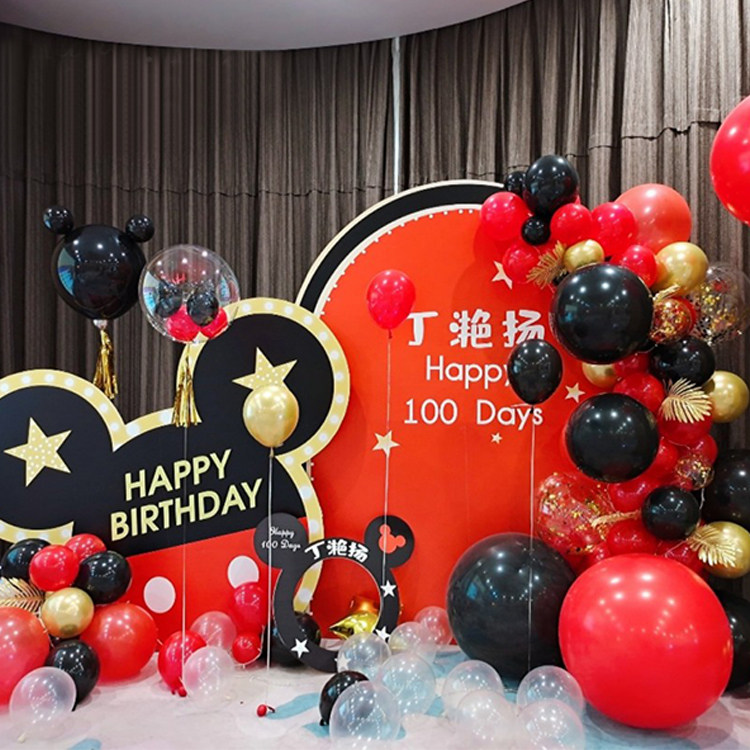 Baby 100-day banquet full moon decoration Mickey balloon chain male and female mouse baby 1st birthday decoration welcome card KT