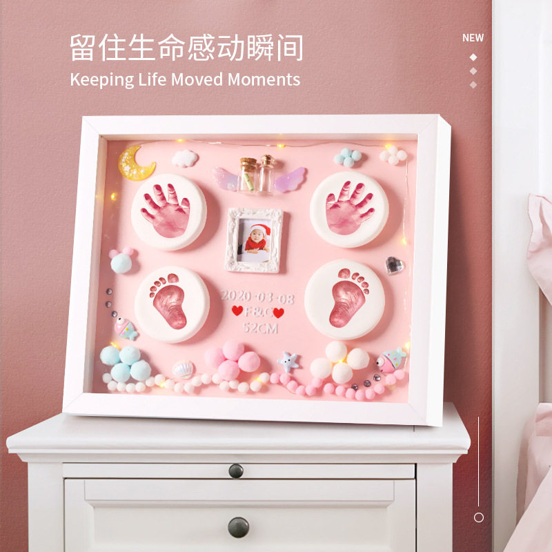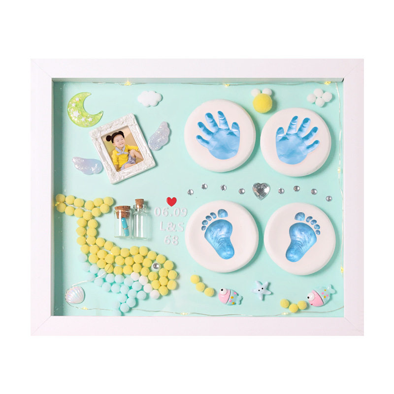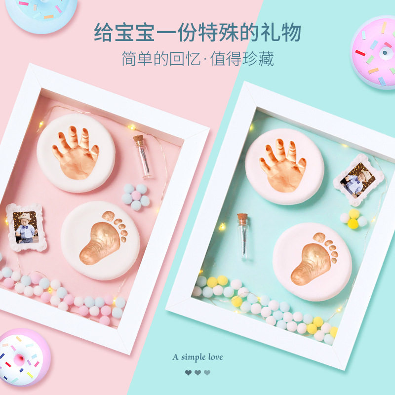 Baby Full Moon Hands Foot Print Baby Footprints Hand-printed Clay Photo Frame Newborns Hand Foot moldy Mao Remembrance 100-day gift