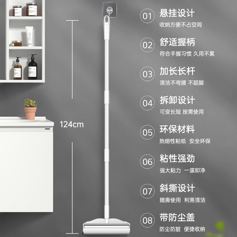 Roller brush telescopic long rod sticker roller long handle dipping hair removal hair removal hair rolling hair large roll paper sticky hair artifact floor