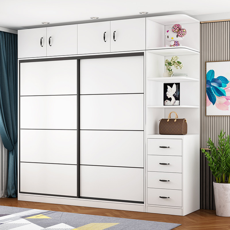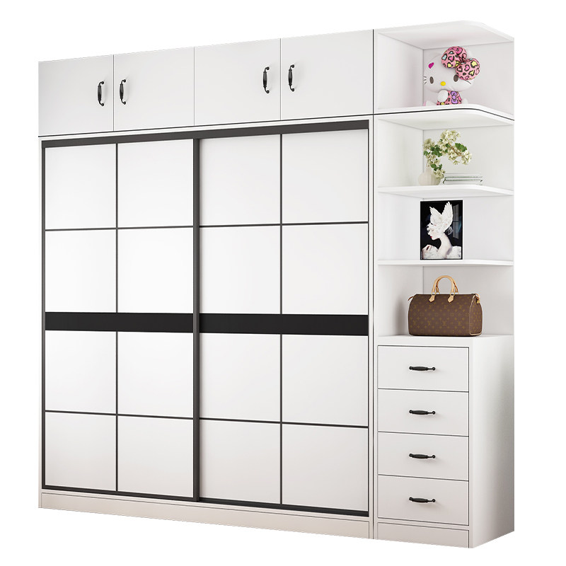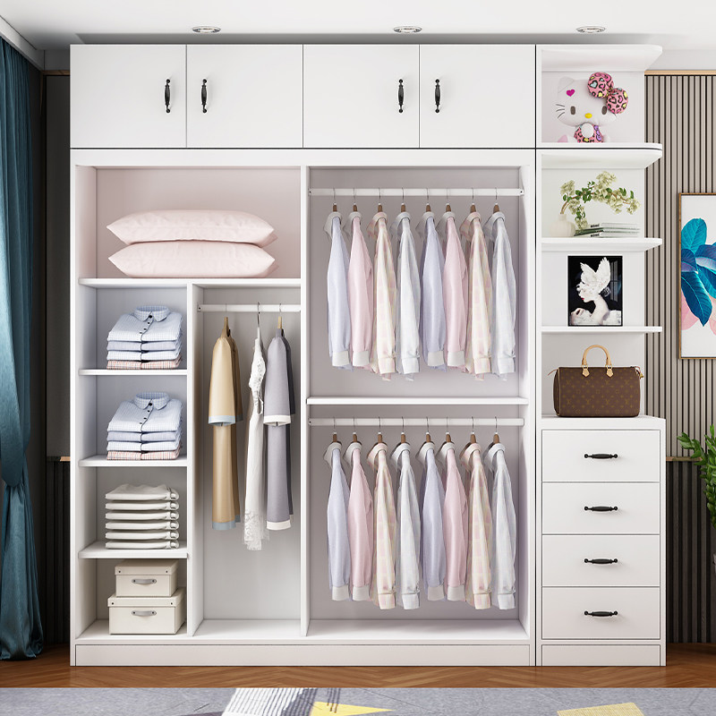 Wardrobe Ramen Brief Modern Home Bedroom Small Family rental room with eco-friendly solid wood moving door big closet