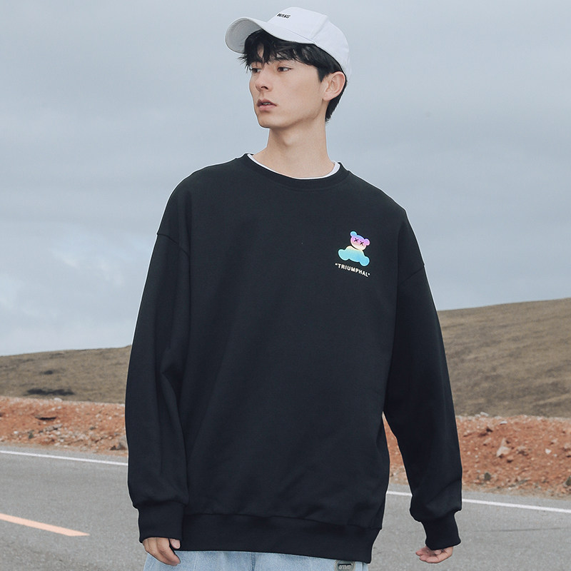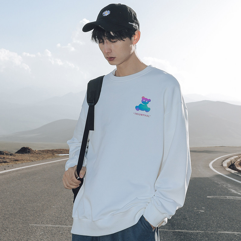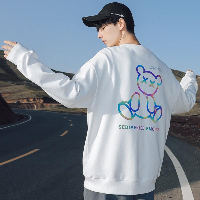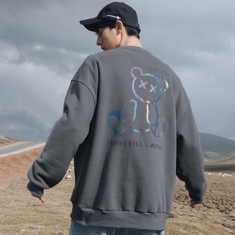 Round-collar thick cotton T men 2021 Fall new Iins trendy Fried Street Reflective Little Bear Printed Loose Casual Inner lap