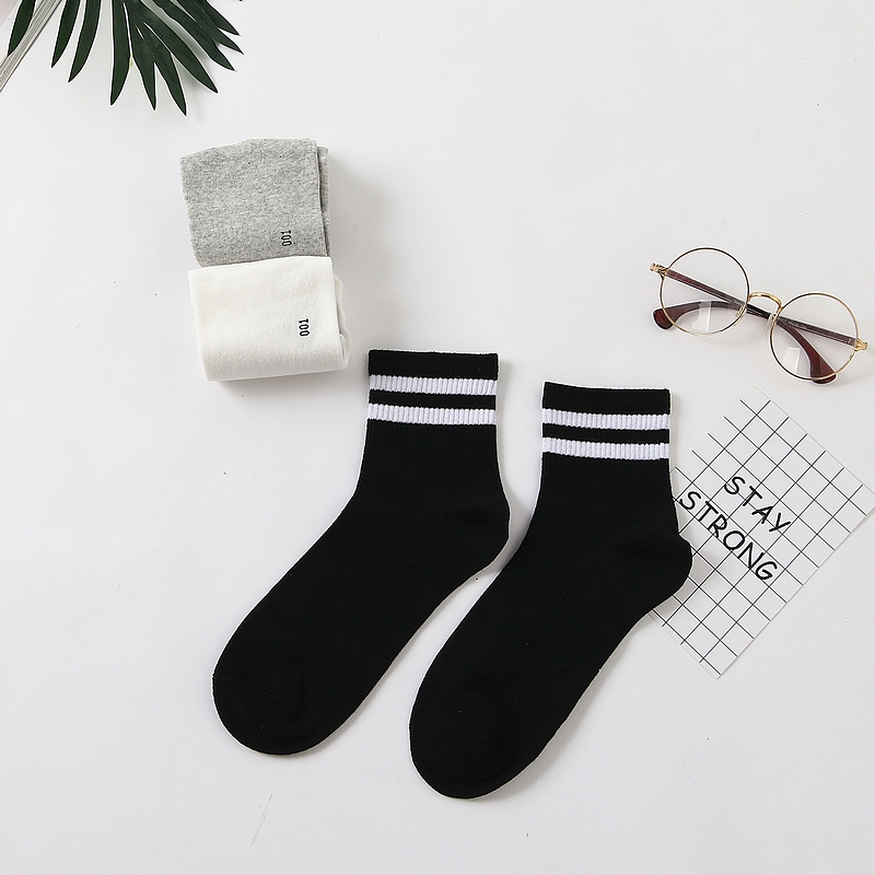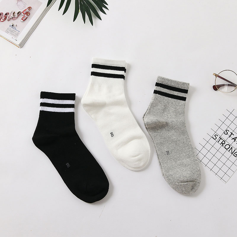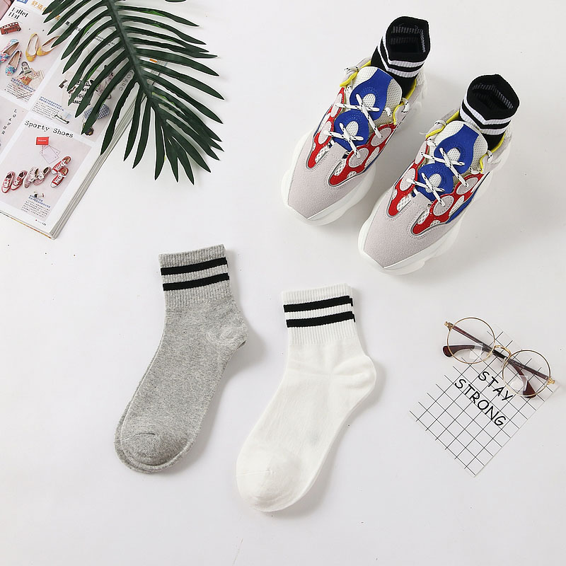 Women's dress 2022 Summer thin Academy Wind 100 Akins retro Two bars Striped Socks for men and women