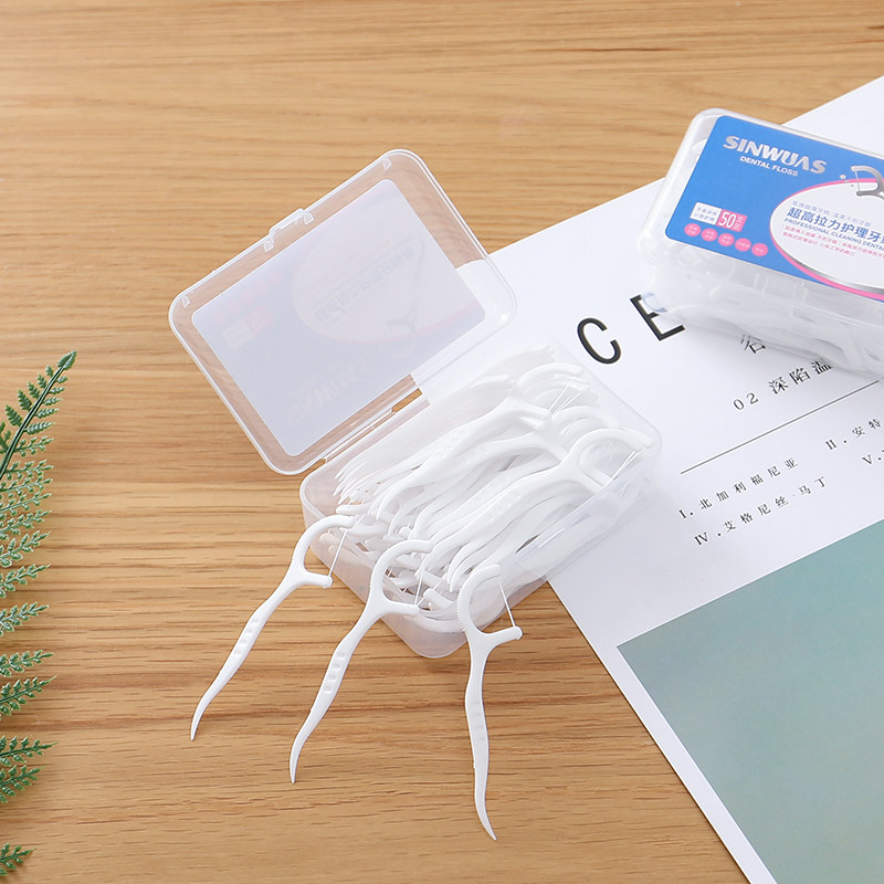 50 Loaded Portable Dental Floss Ultra-fine Carry-on BOW THIN SLIDE SAFETY ELIMINATING DENTAL WIRE ROD DISPOSABLE TOOTHPICK LINE