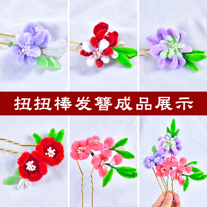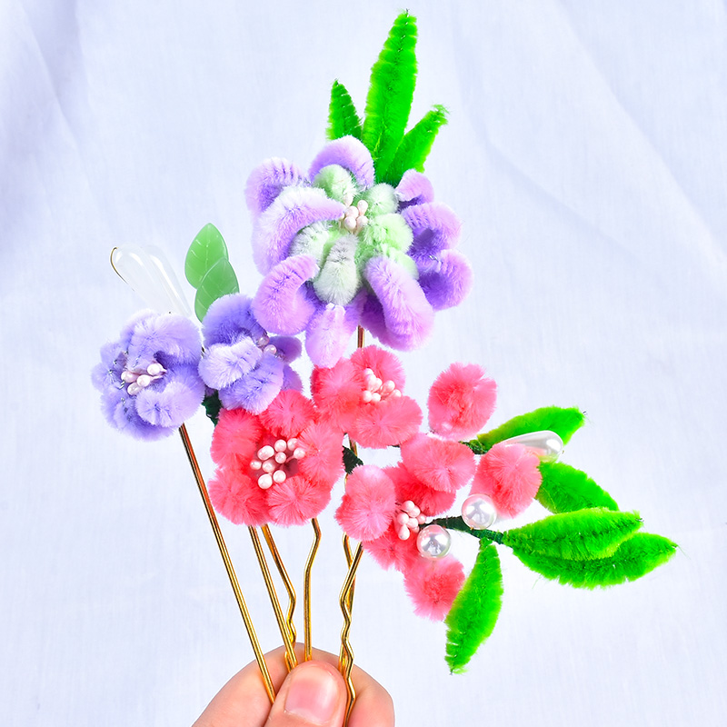 Happy color ancient style imitation velvet flower row hairpin diy material encryption 10MM color twist twist stick velvet flower stick thick hair root strip