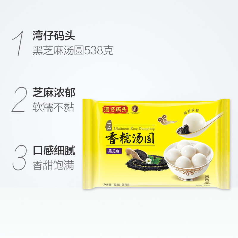 Wan Chai Wharf black sesame glutinous rice dumplings 538G fast food frozen small Yuanzi yuanxiao wine Balls Dessert