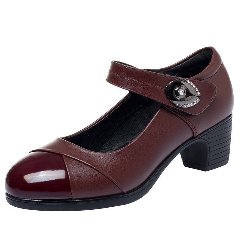 Dance shoes women's leather soft bottom middle-aged and elderly square dance shoes women's thick heel social Latin dance mother dancing shoes