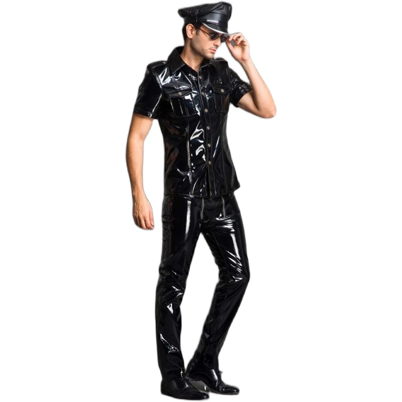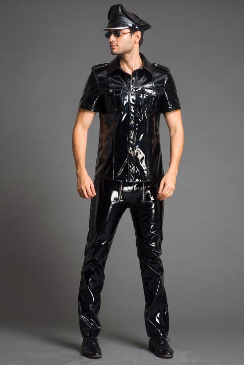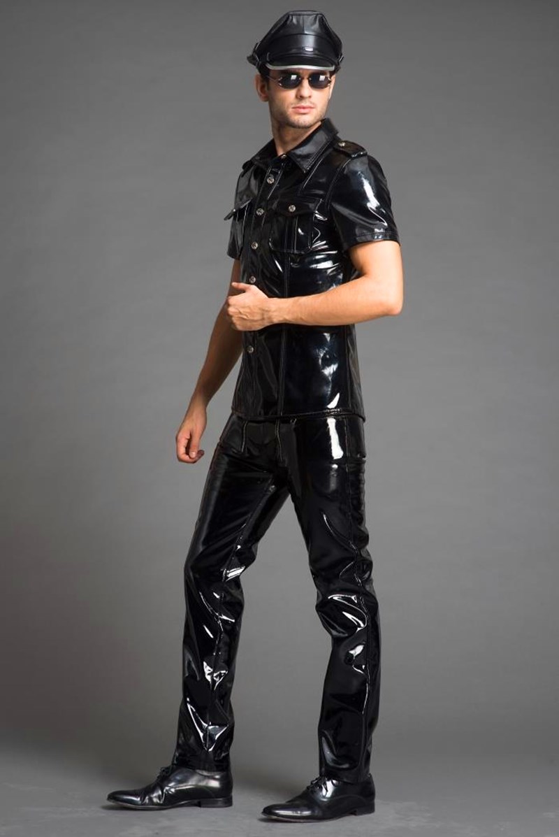 Private Custom Leather Sheepskin Bright Patent Leather Short Sleeve Shirt Leather Clothing Uniform Bar Type Men's Leather Party Party