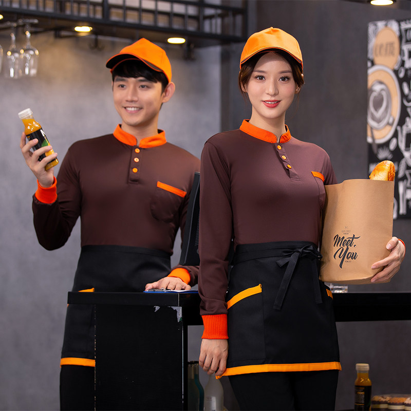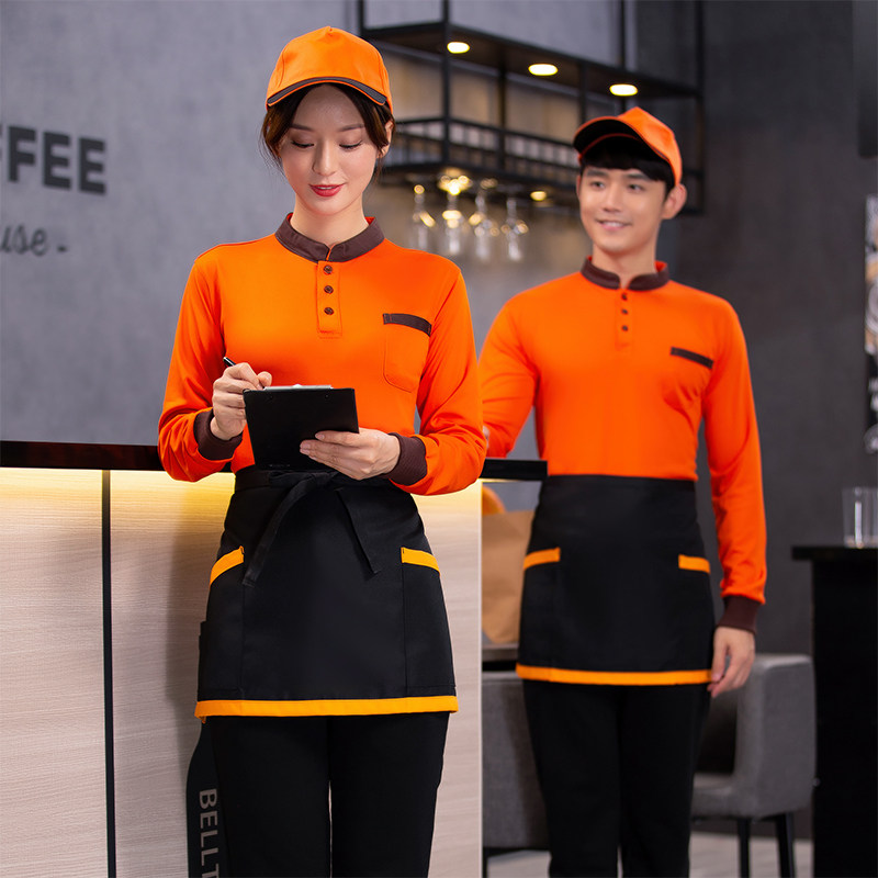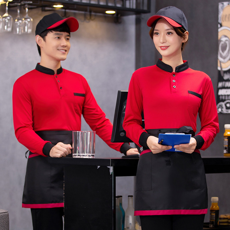 Catering Attendant Workwear Custom Print LOGO Long Sleeve Hotel Dining Room Milk Tea Fire Pot Shop Snack Bar