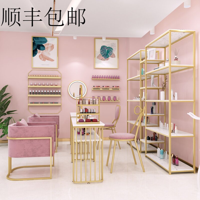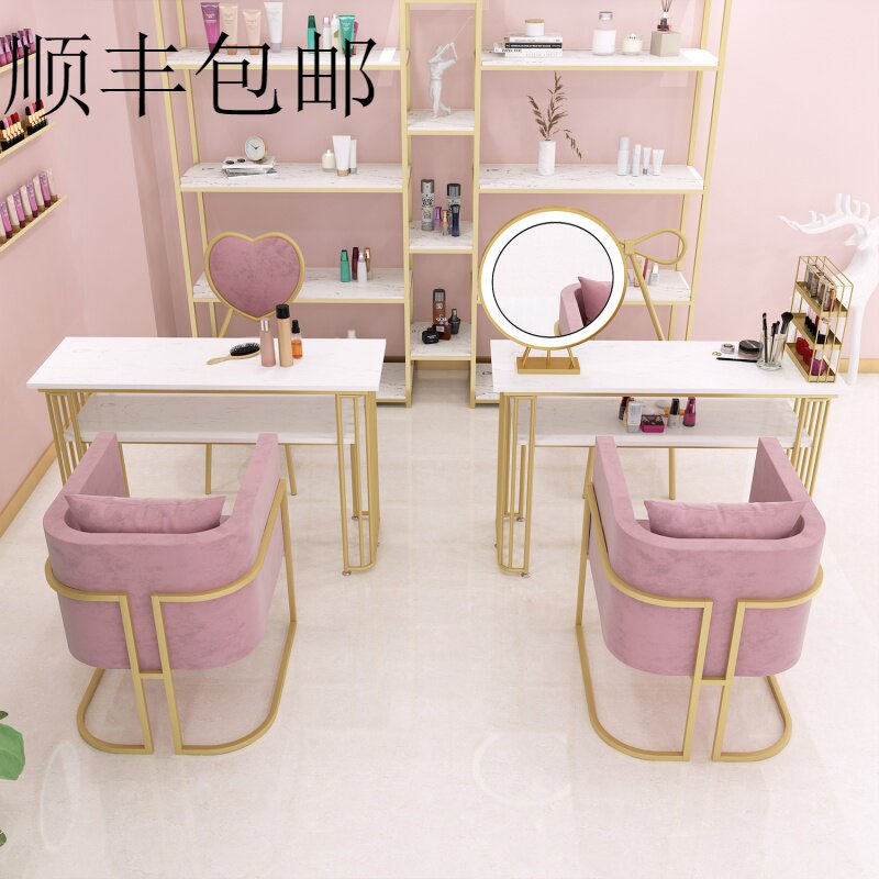 Customized Nordic Nano Gold Beauty Nail Table and Chair Set Single Sofa Shop Gold Double Nail Table