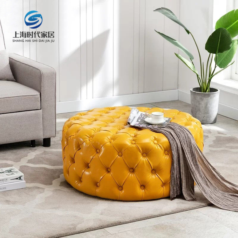 American-style pull button living room coffee table square stool flannel sofa foot bench home door cloakroom simulation leather changing shoe stool