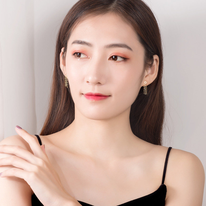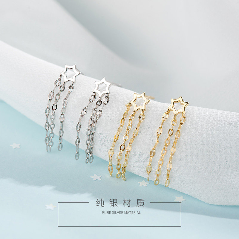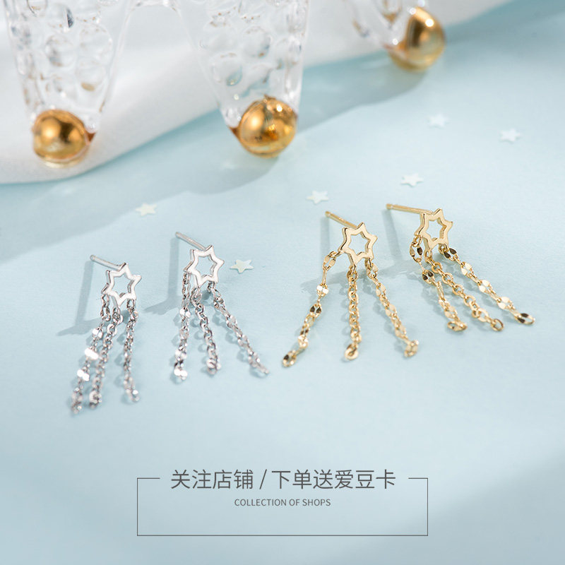 2022 New wave Advanced sense pure silver hexagonal ear needle shorts short flow Su Stars earrings plated 18k gold