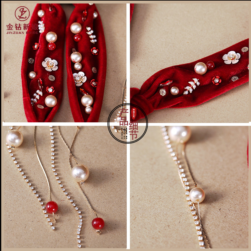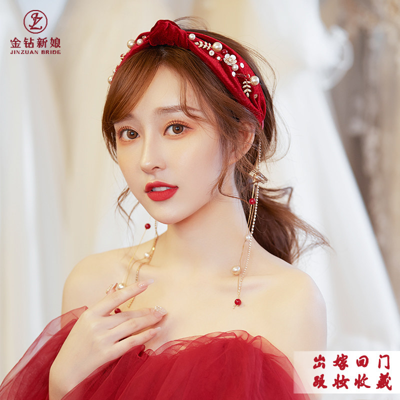 Gold drill bride 2021 new retro wedding gown hair band with makeup back door toast red headwear photo ornament