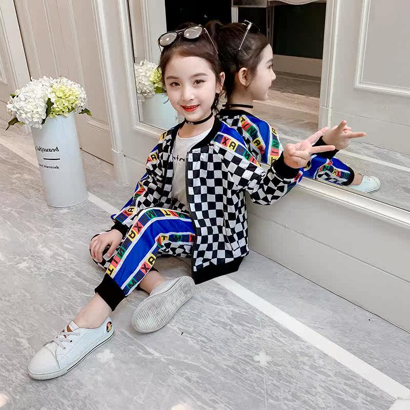 Girls Sports Kit 2023 New Fashion Yang Spring Network Red Children Han Edition Little Girl Leisure Two Pieces Set