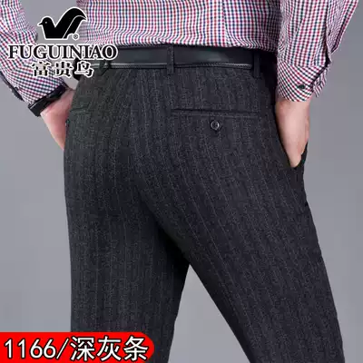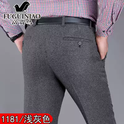 Rich bird autumn and winter middle-aged and elderly trousers men's high-waisted loose business formal casual ironing-free wool suit trousers