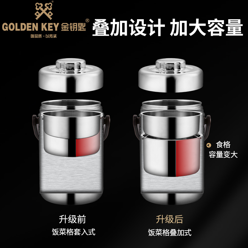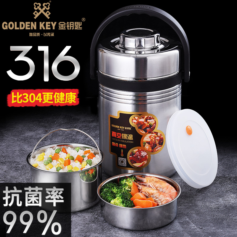 Golden key household office worker 316 stainless steel insulated lunch box Vacuum ultra-long portable 1 person capacity multi-layer bucket