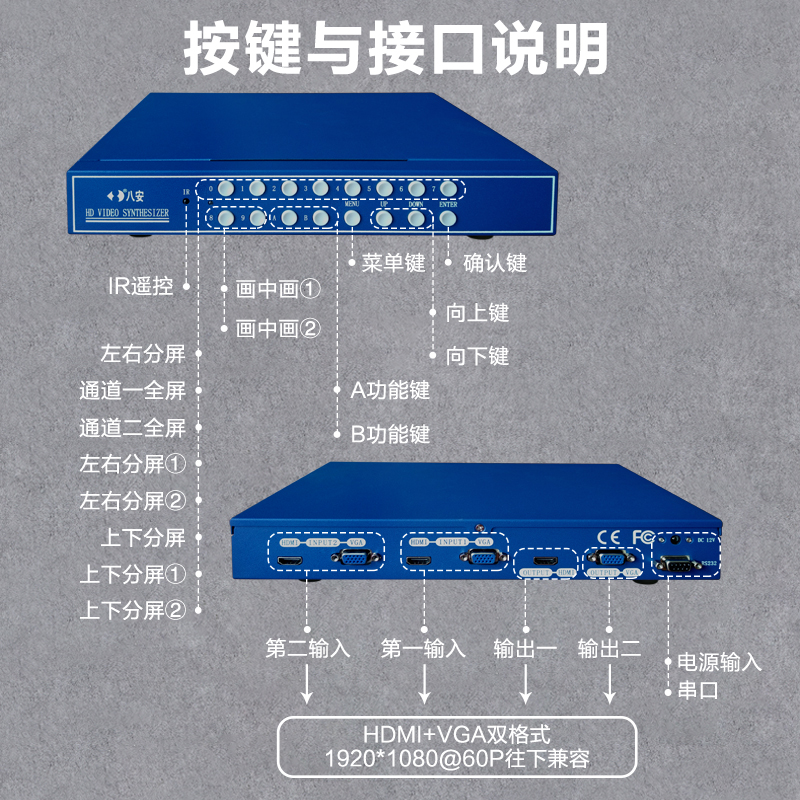 HDMI Screen Segmentor VGA Video Divider HD 2 road 2 image processing painting overlay camera eight amp