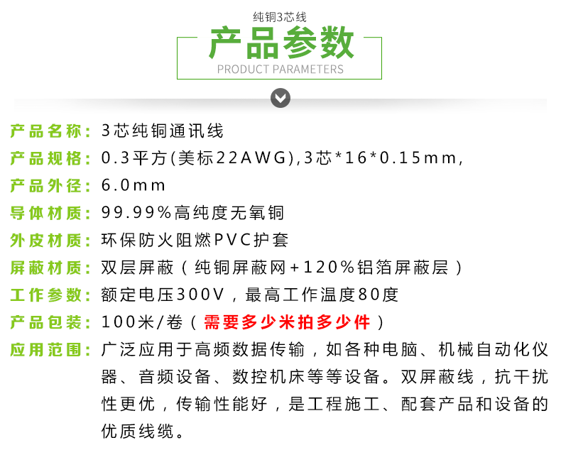 Scattered line 3-core double-shielded pure copper connection line DB9 serial port data line RS232 485 signal industrial communication