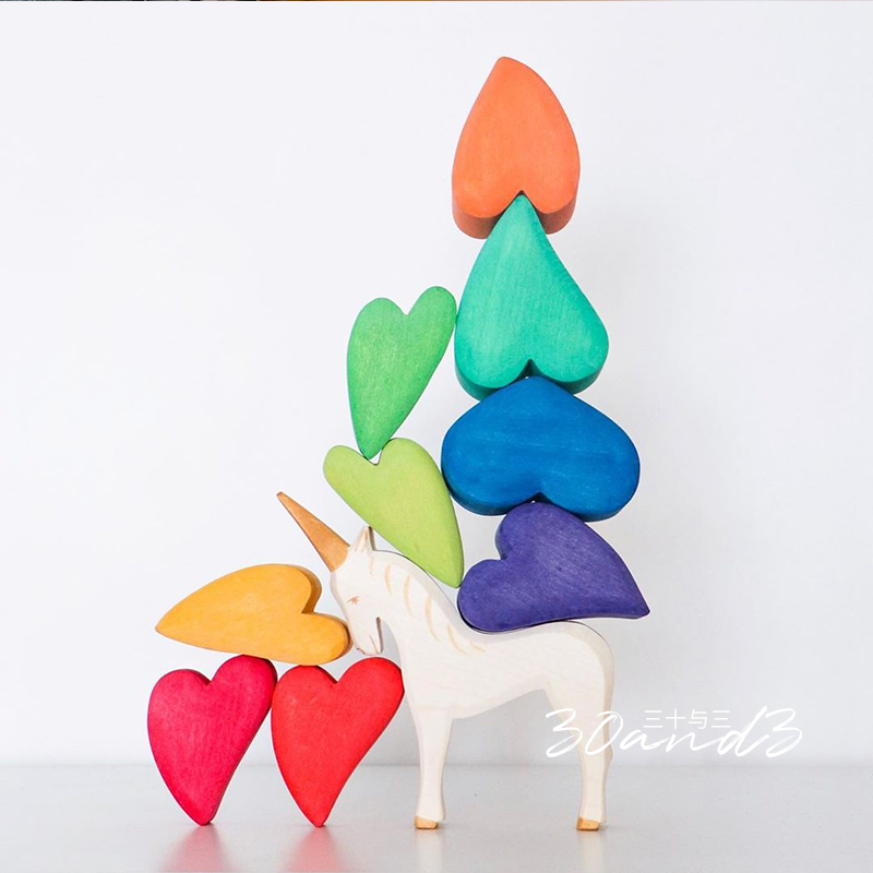 Rainbow weather scene construction solid wooden building blocks Small particles toys Frosted balls Forest tree house Coral