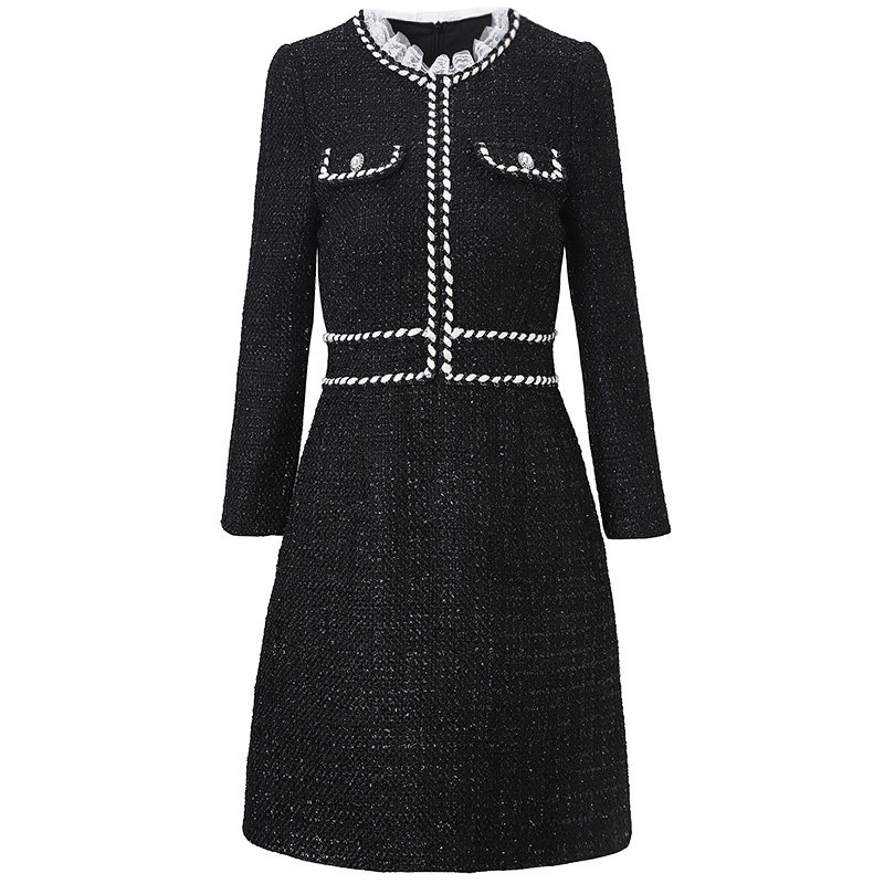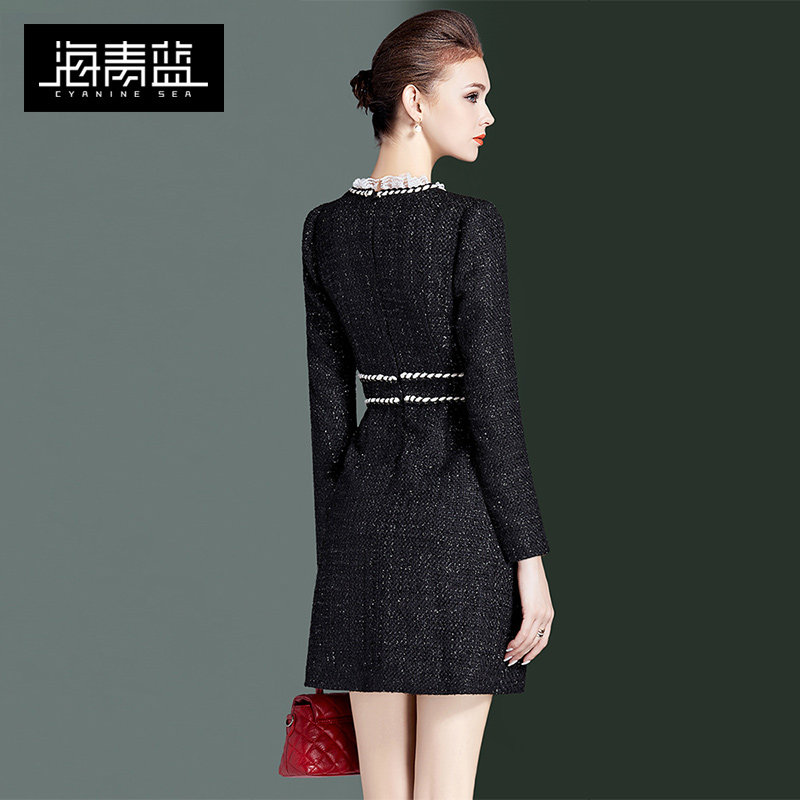 Haiqing Blue name Yuanyuan Elegant Dress Woman 2021 Fall New Temperament Woman Dress Coarse Flowers Black Short Dress 52421