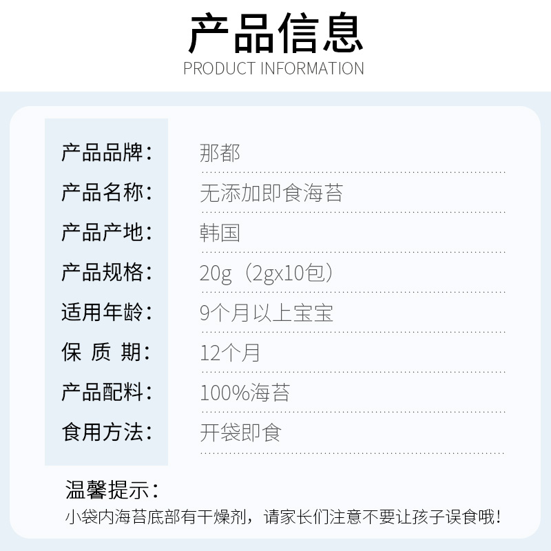 South Korea's all the sea Tweed baby Little snacks pure natural nutrition Deputy food without oil ready-to-eat sea Tweed for 9 months
