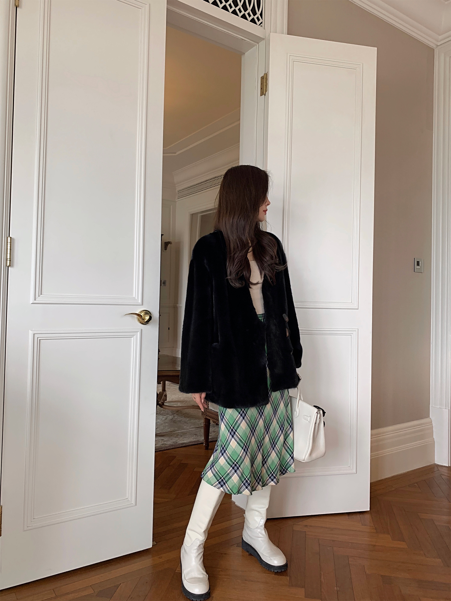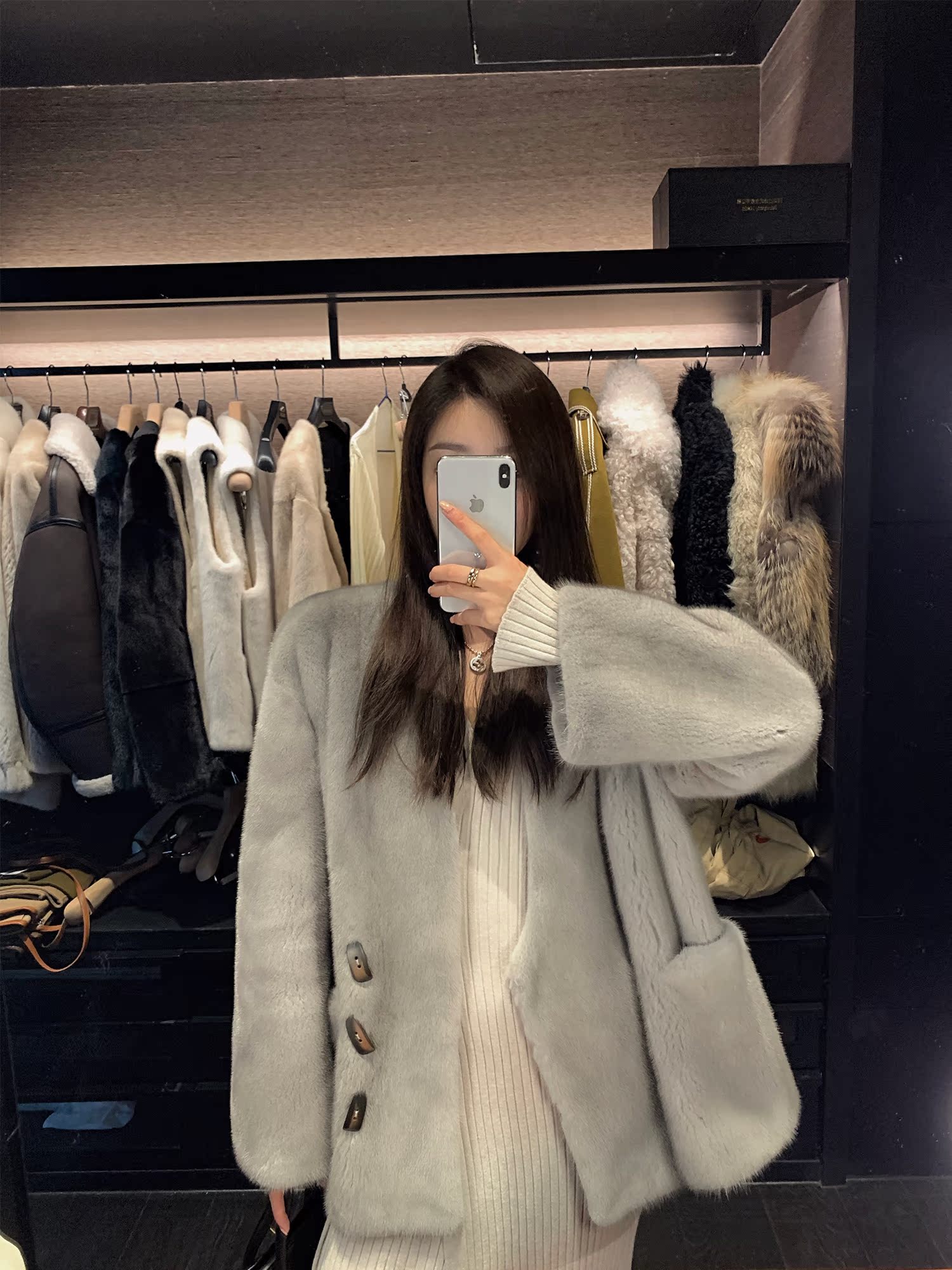 Fu Zhien Fleeting Mink Imported Purple Label Velvet Mink Fur Coat Women's Profile Whole Mink Mink Fur Coat Winter