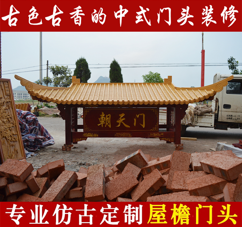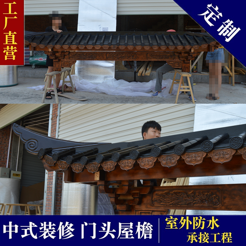 Dongyang woodcarving Chinese style antique solid wood eaves ancient building fake door head decoration flat corner warped corner hot pot restaurant gatehouse customization