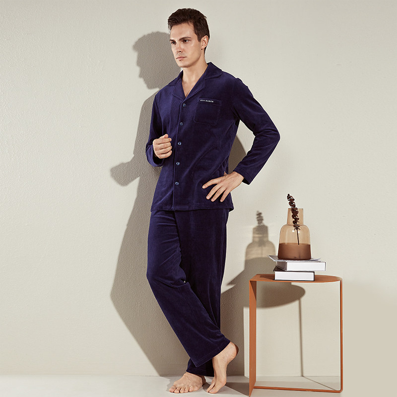 Germany Shuya pajamas men's corduroy men's home clothes towel cloth cotton long-sleeved suit thick E9-18002H