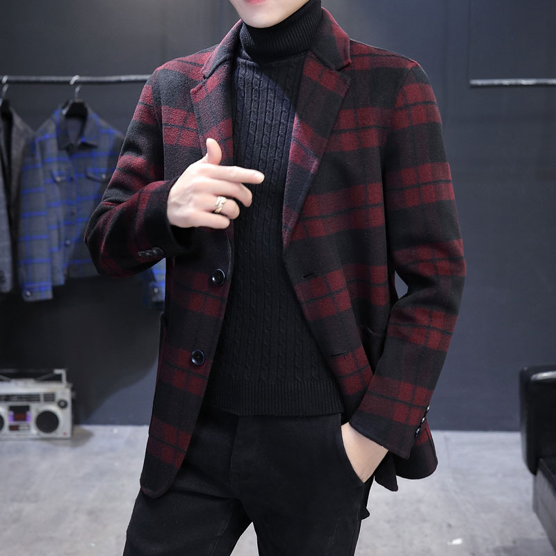 Double-sided woolen suit men's Korean version slim autumn and winter youth men's small suit trend woolen zero cashmere jacket trend - Taobao