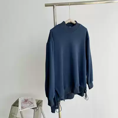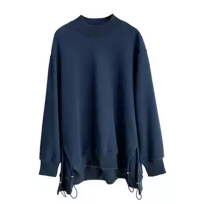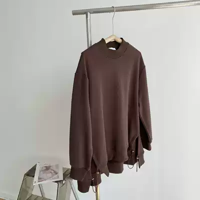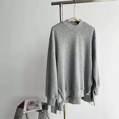 Nine buckle large size women's hem split sweater solid color design sense loose and lazy Hong Kong style pullover sweater 804