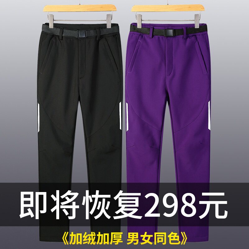 Autumn and winter stormtrooper pants Men's and women's velvet thickened windproof waterproof ski pants Outdoor mountaineering warm fleece soft shell pants