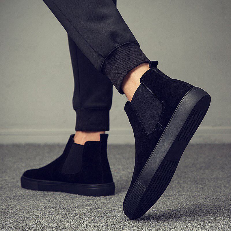 Men's shoes 2021 new autumn and winter tide movements Overturning Fur Gush Chelsea Martin Boots Casual Medium-high Cylinder Shoes