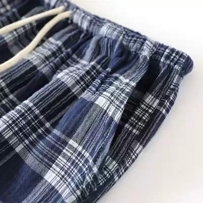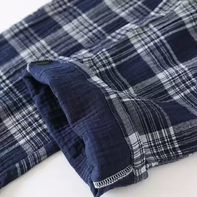Japanese plaid pajama pants men spring and autumn cotton gauze trousers washed crepe thin loose home pants men kz