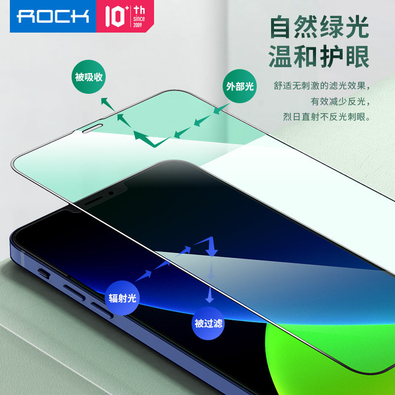 ROCK Apple 12 steel chemical film iPhone12 mobile phone protective film 12promax new green light protective eye blue protective film 12mini fullscreen cover reinforced clad edge explosion protection