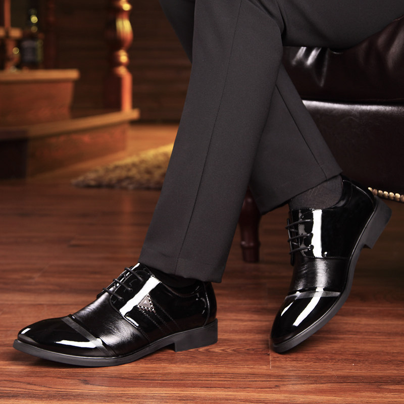 Business formal leather shoes men's Korean version of the youth black British work shoes suit groom best man wedding shoes