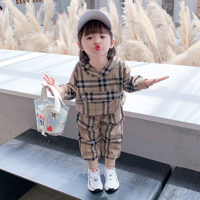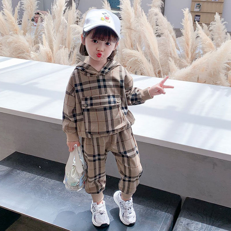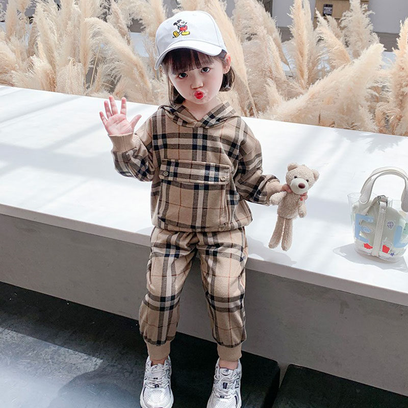Children's clothing Girls ' autumn new 2020 spring and autumn suit Baby Ocean school cute children's plaid sweater two-piece tide