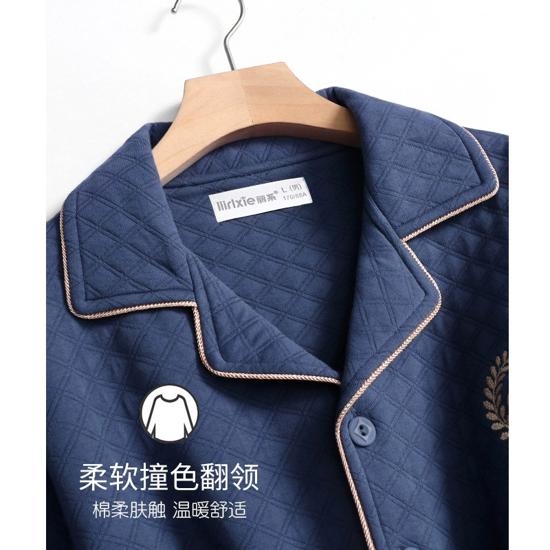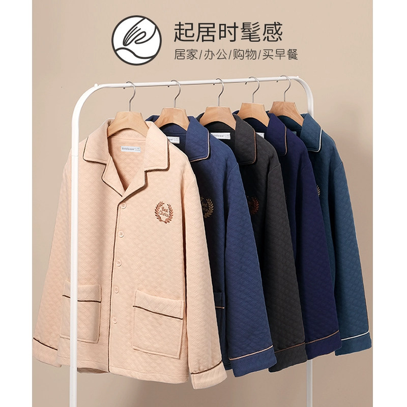 Pyjamas Men's autumn and winter models Long sleeves pure cotton thickened Home Clothing Spring Autumn Season Full Cotton Air Cotton Clip Cotton Sandwich Suit