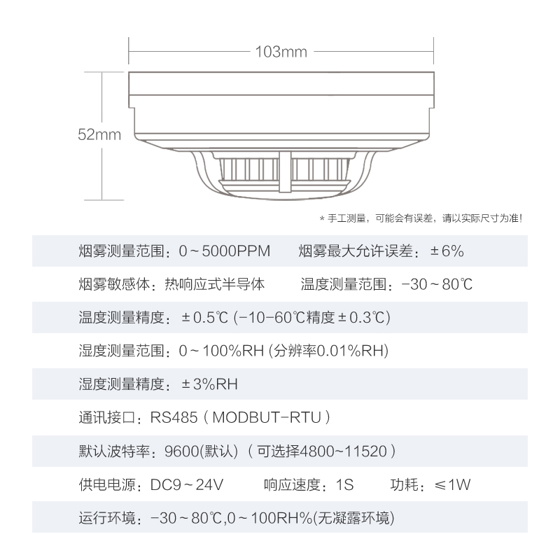 Smoke temperature and humidity sensor alarm industrial-grade smoke detection RS485 smoke sensor transmitter current and voltage