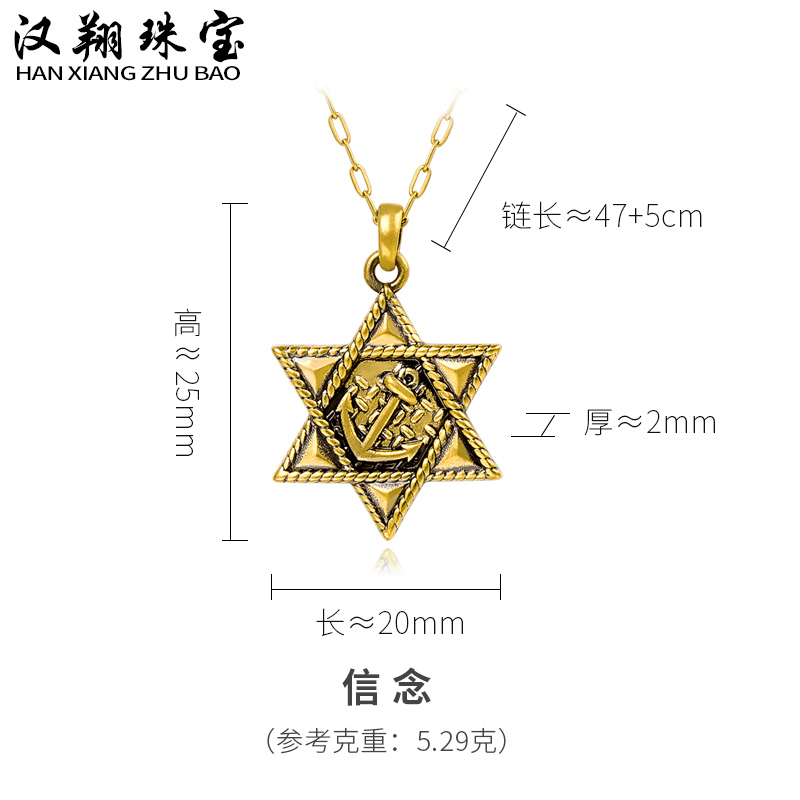 999 foot gold necklace female gold sleeve faith six-man star collarbone chain 5d hard gold electric black gold country tide ancient wind
