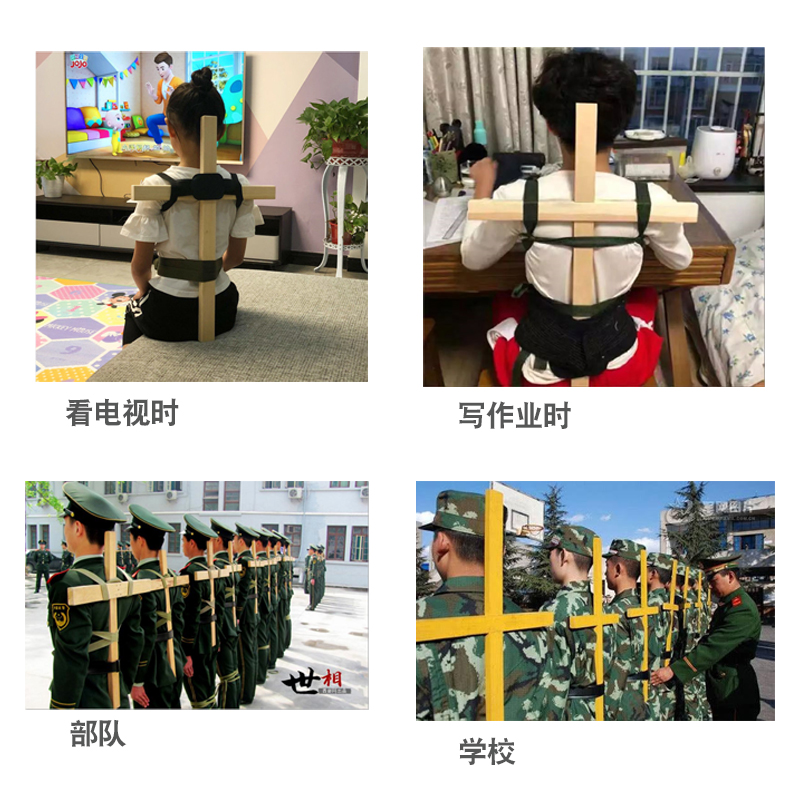 Body posture correction cross Children's back pull shoulder artifact Anti-humpback student sitting position standing position Solid wood frame