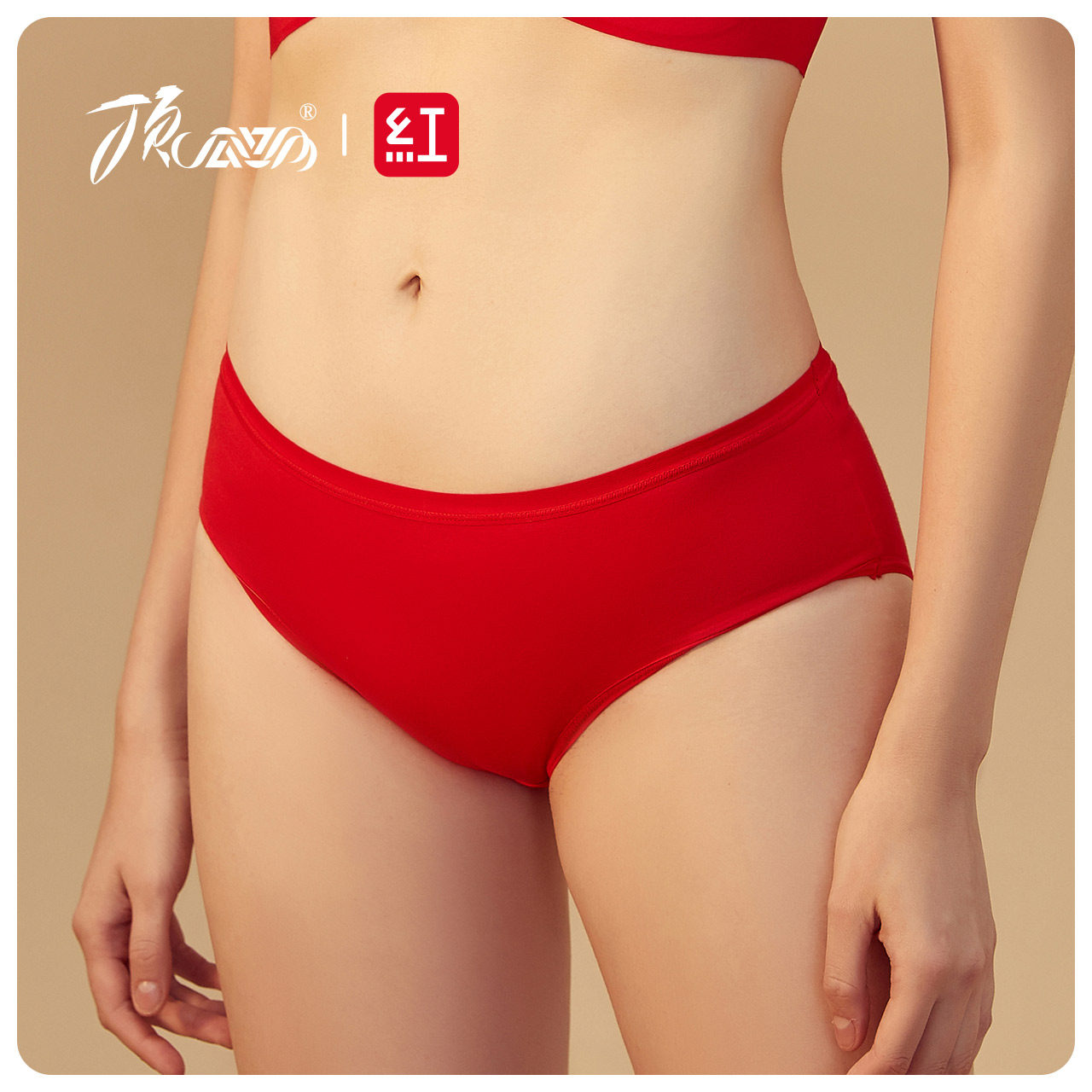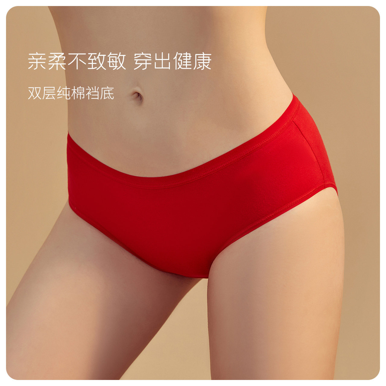 Top melon Melon Red Pint Pants Lady Pure Cotton Bottom Stall Mid-Waist Girl Raw Breathable Triangle Red Pants Head Three Top Pippions