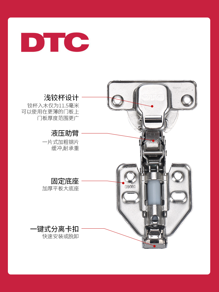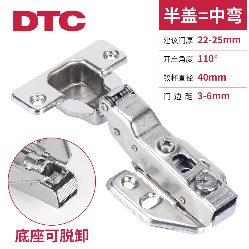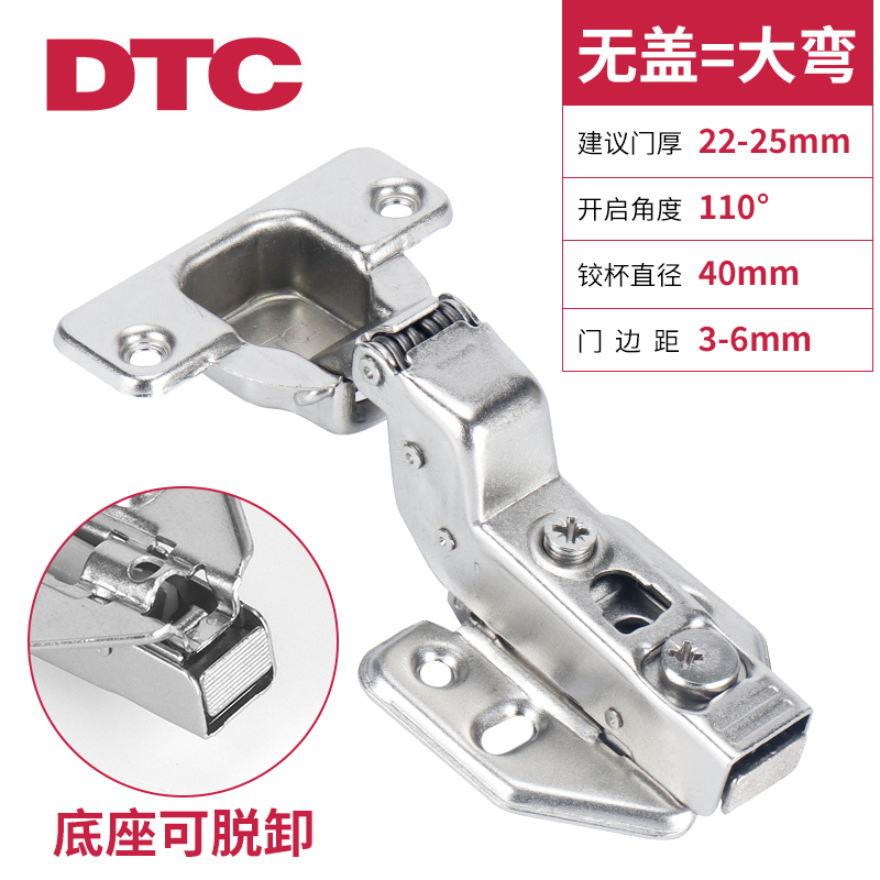 Dongtai dtc hinge 304 stainless steel hydraulic nylon cushioning damping hinge integral cabinet wardrobe two-stage force page thickening