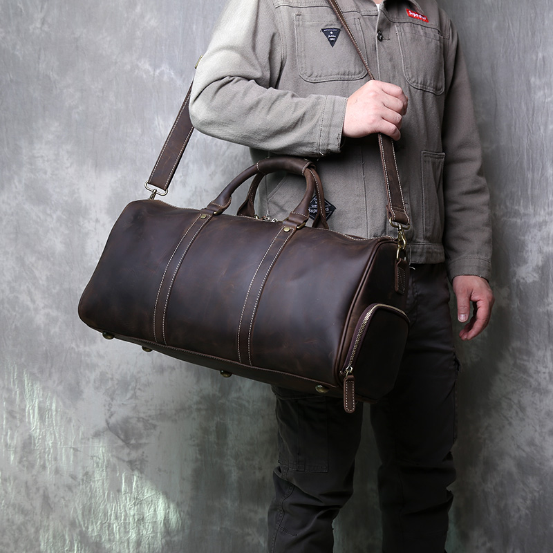 Retro Crazy Horse Leather Travel Bag Men's First Layer Cowhide Portable Fitness Locomotive Duffle Bag Large Capacity Business Travel Messenger Bag