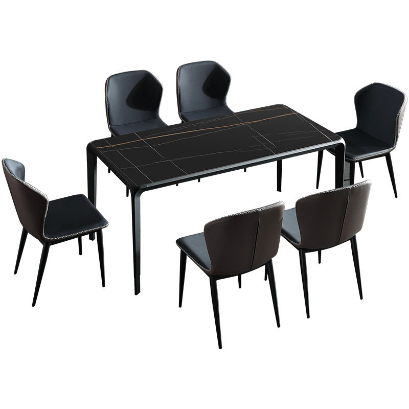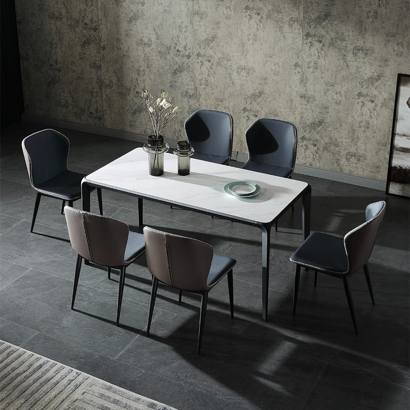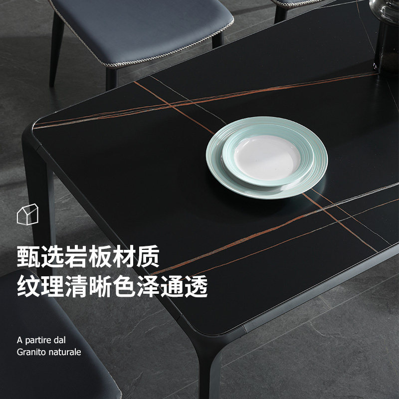 Italian light luxury dining table small apartment rectangular rock slab table one table six chairs dining table and chair combination dining table household