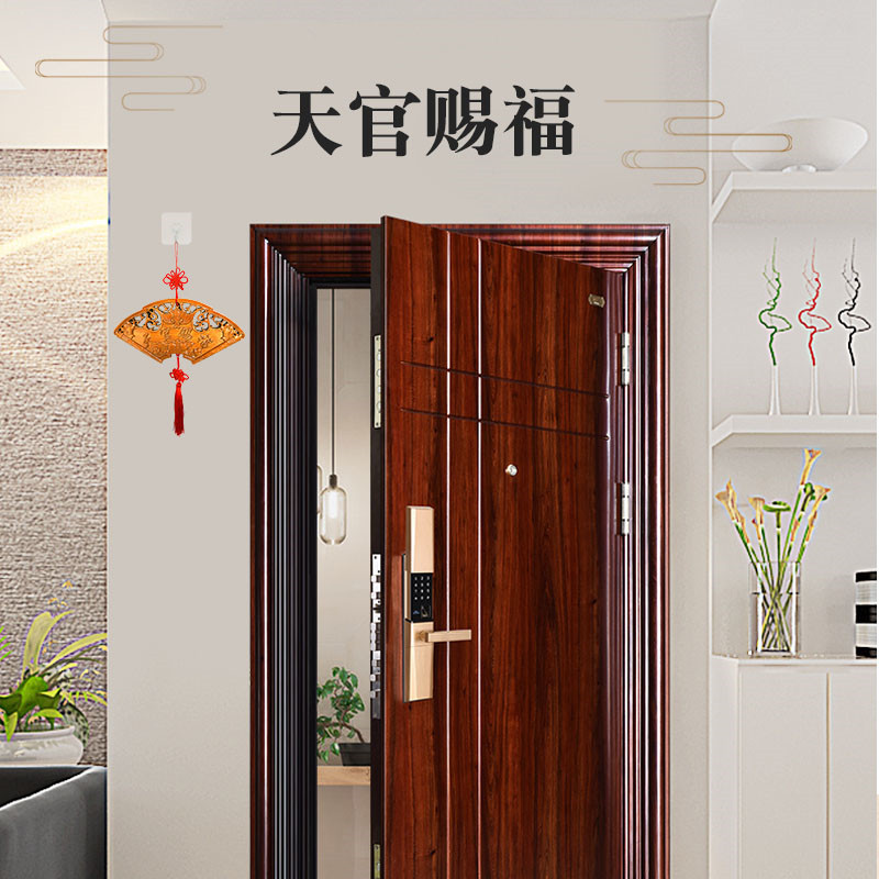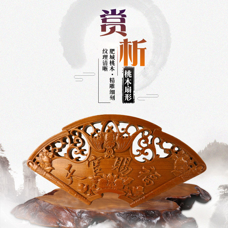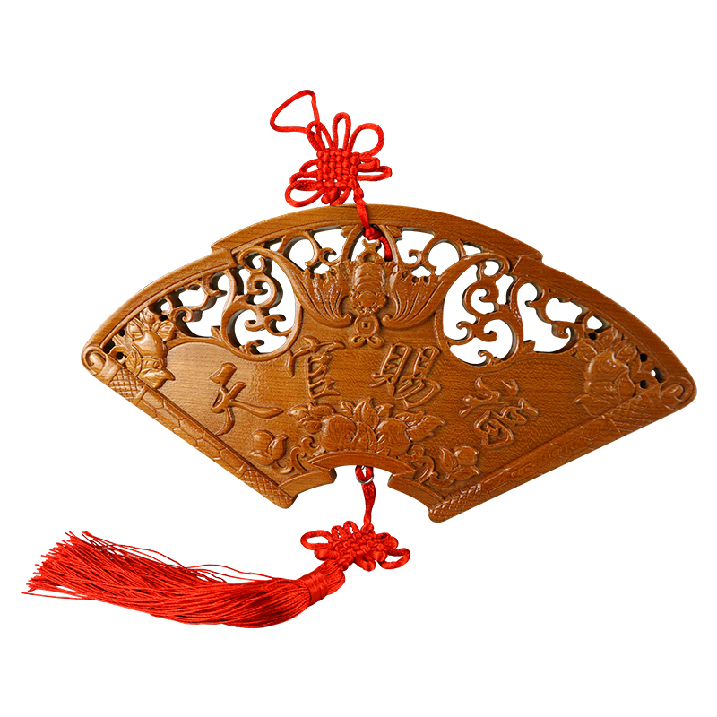 Sector peach wood Tianguan Blessing Pendant Home Living Room Large Doorway Door to Gate Plaque Small wood Carved Decoration Pendulum