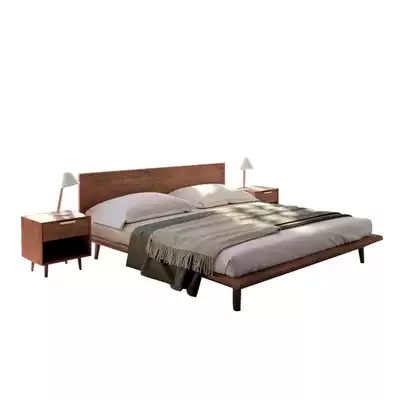 North American black walnut full solid wood double bed 1 81 5 meters Nordic bed Italian light luxury wedding bed Master bedroom luxury type